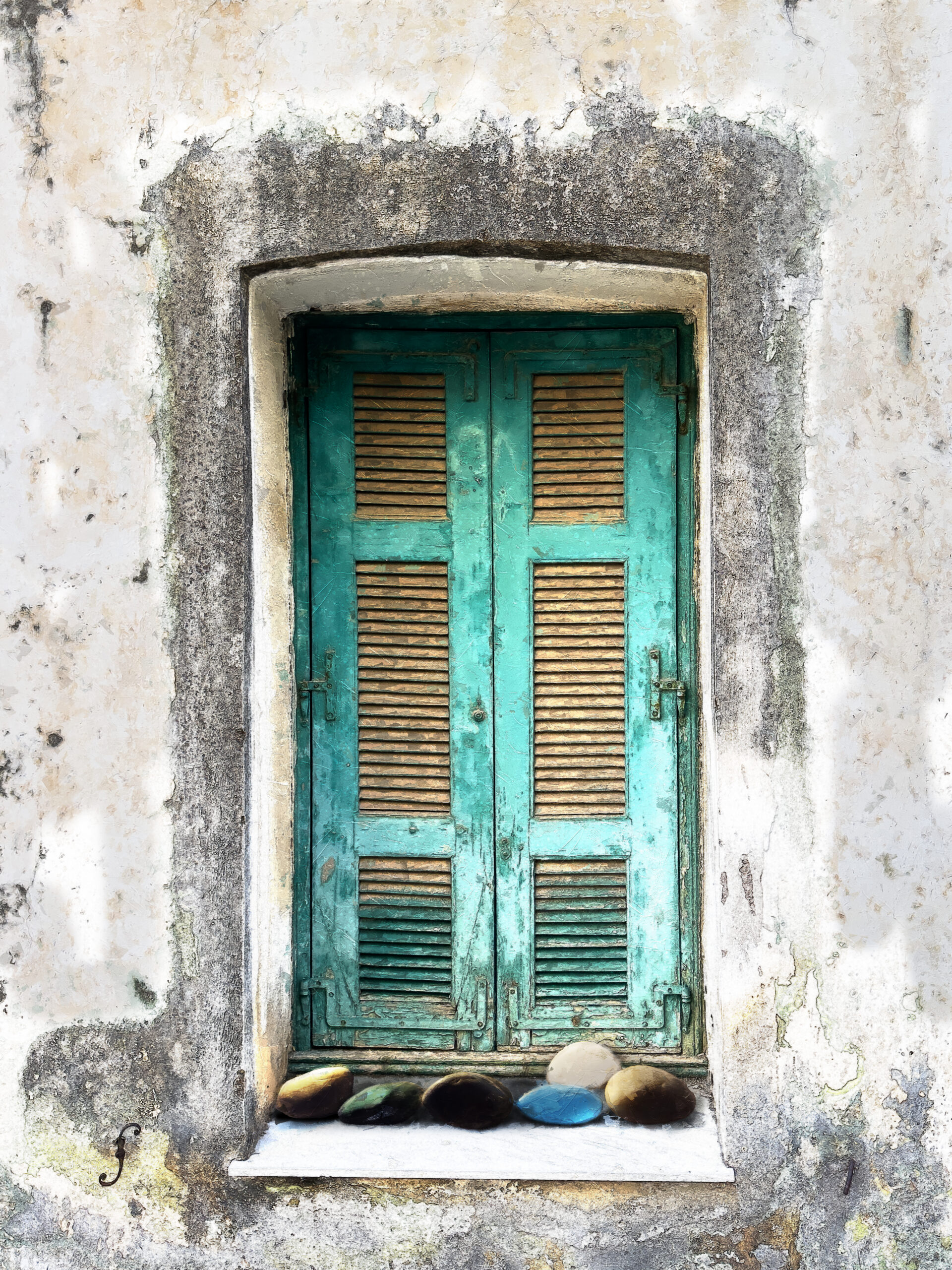 At the heart of this work is the green door — more than just an architectural gesture, it is a threshold between worlds: the intimate human realm of color and form, and the wild, elemental stage of sky, sea, and stone. In Mediterranean tradition, the painted door symbolizes life’s welcoming warmth amidst elemental beauty — and here, the verdant hue stands in exquisite contrast to the stark rock facades of Milos’s storied terrain.