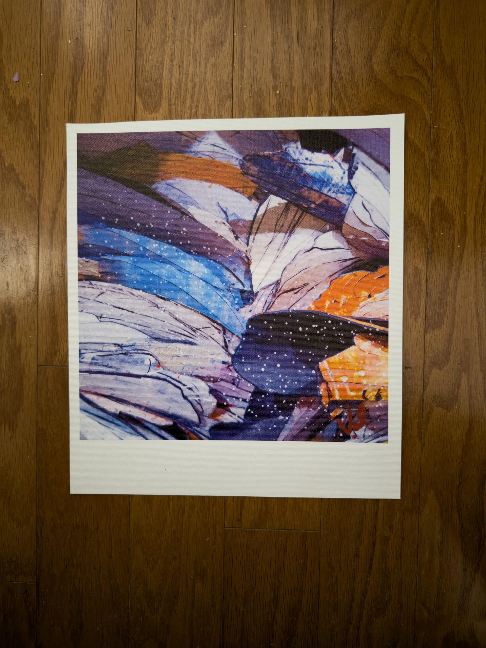 The Exhibition Canvas comes in 3 sizes and goes through several steps that include overpainting with acrylics, signing with acrylics on the front and a final glazing to protect the canvas before being rolled in a sealed tube then a box ( shipping is free in the USA )